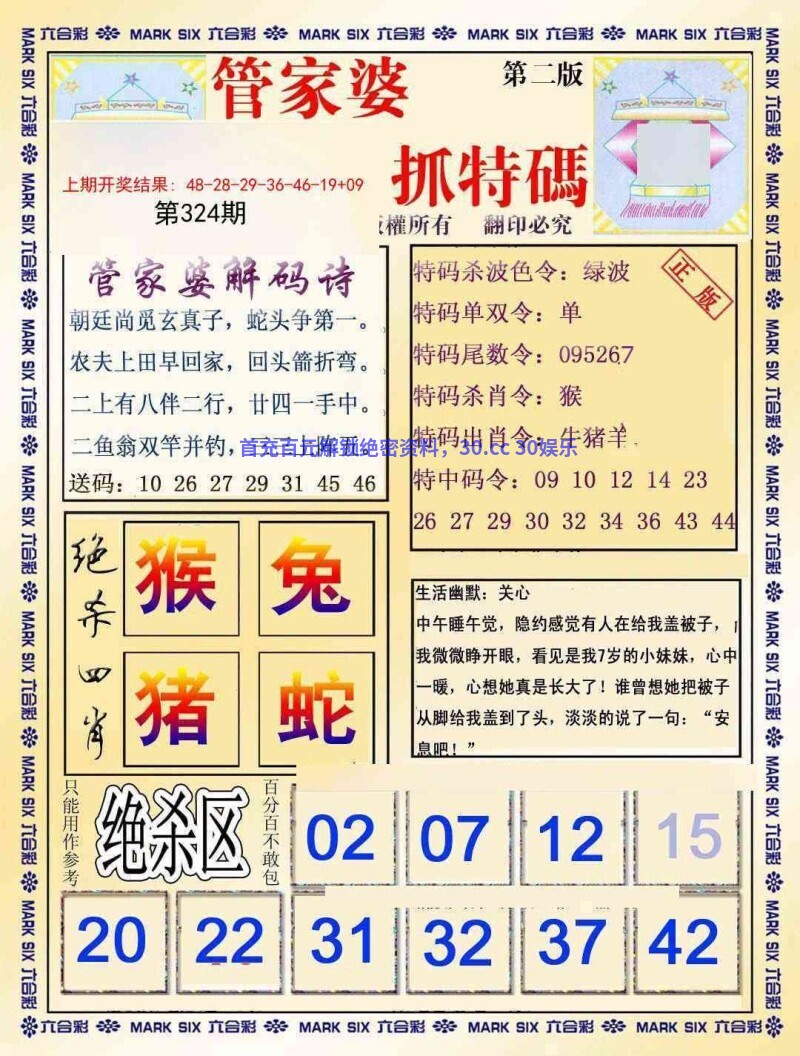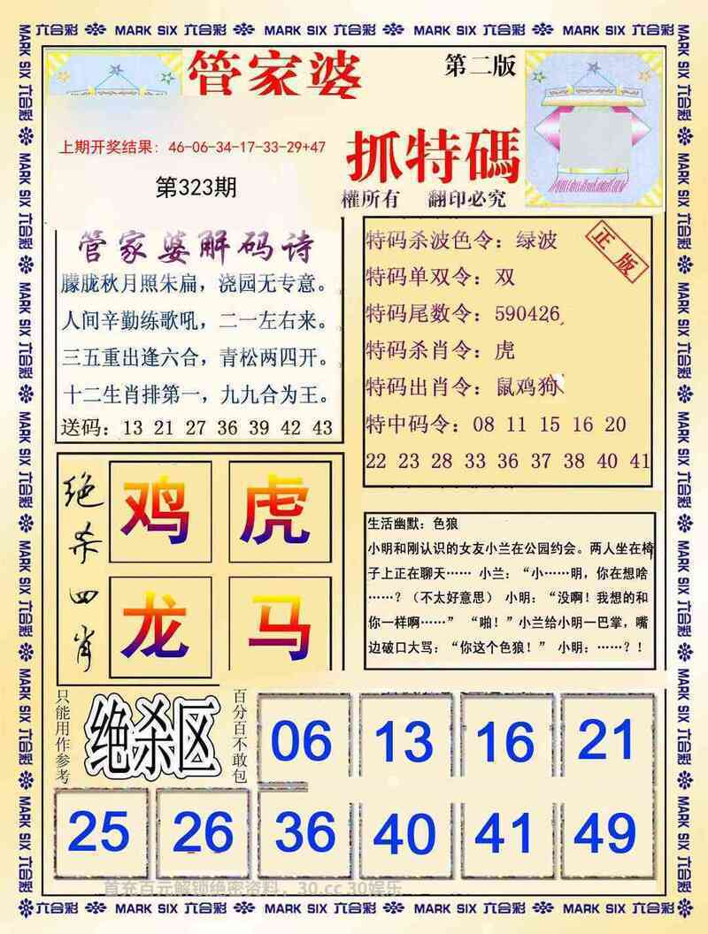 326期:特码暗语/曾道人救世心经/攻特料/六合心经/平码生肖点将
